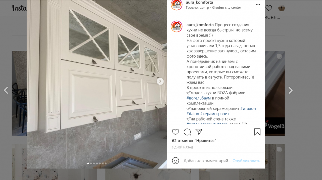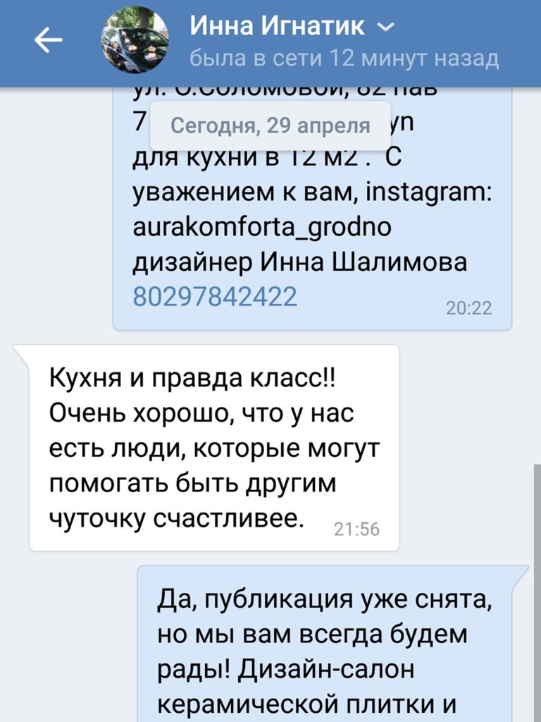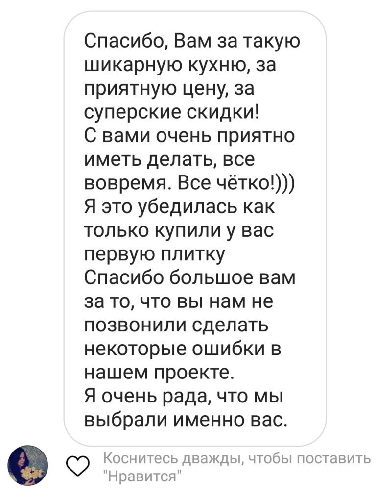 Оформляли заказ мебели в кухню. Мне очень понравилось обслуживание. Так дизайнер нам уделила максимум времени, никто не отвлекал на других клиентов, которых в салоне всегда было много. Наш заказ вели от и до, постоянно на связи.